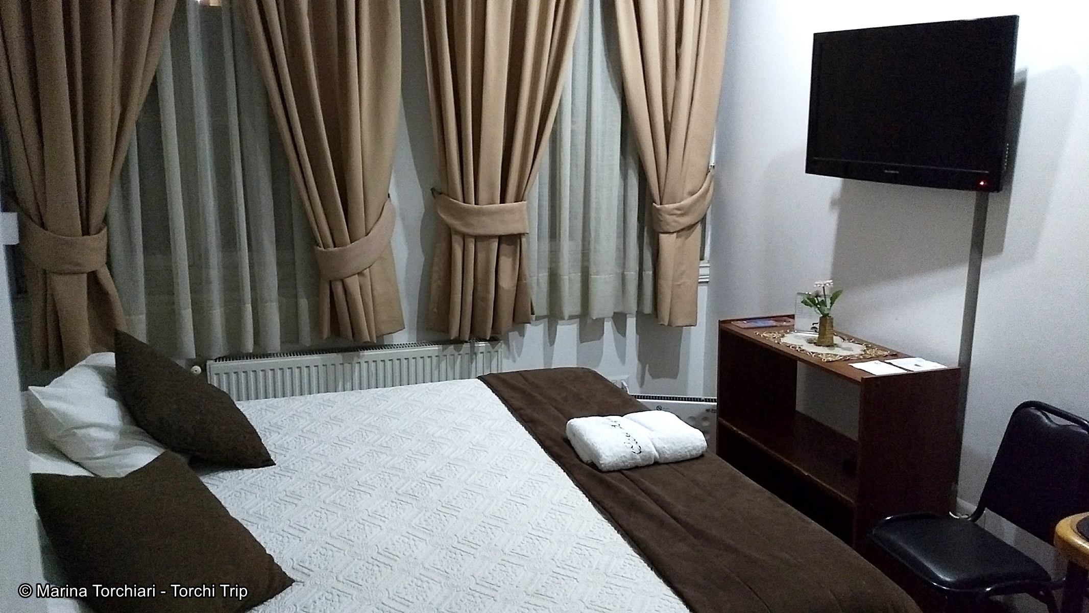 El desayuno es modesto pero funciona y la atención del personal es muy cálida y atenta. No se si era una cuestión temporal, pero la calefacción central por radiadores no estaba funcionando entonces contaban con calefactores eléctricos individuales en cada cuarto. El detalle a destacar: una zapatilla con 4 tomas y adaptador de corriente múltiple para poder cargar todo al final del día.