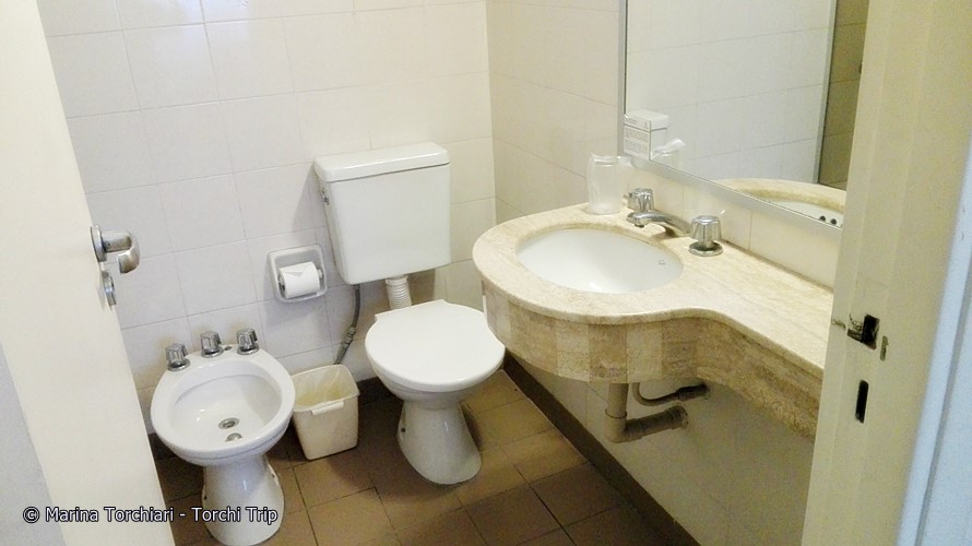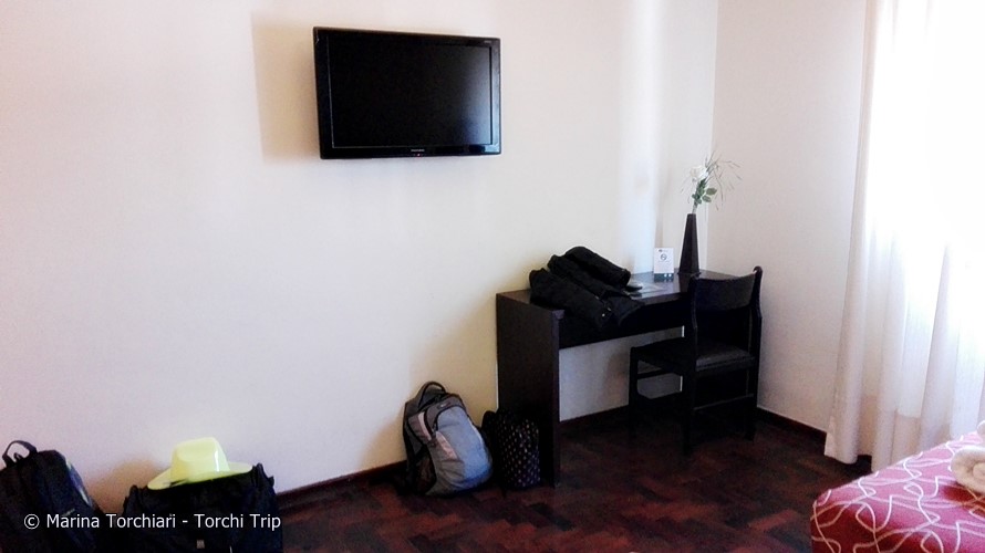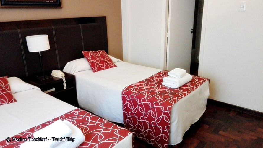 Está ubicado a 1 cuadra del centro de Tucumán -prácticamente en frente del Hotel Francia que también visité- y está cerca de todo, incluída la Catedral y la Casa Histórica de la Independencia. Es un hotel viejo actualizado recientemente, así que tiene habitaciones de paredes anchas lo que lo hace muy silencioso y cómodo. Las habitaciones son amplias, con cerradura de tarjeta magnética, tele de pantalla plana y escritorio pero con poquísimos enchufes. Yo estaba en una doble twin con una amiga y tuvimos que desenchufar hasta el velador para cargar celulares y baterías a la noche. El wi-fi es por piso, anduvo con lo justo, dudo que sirva para trabajar (por suerte fui un fin de semana 😀 ).