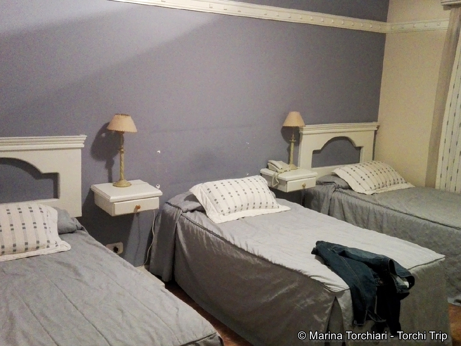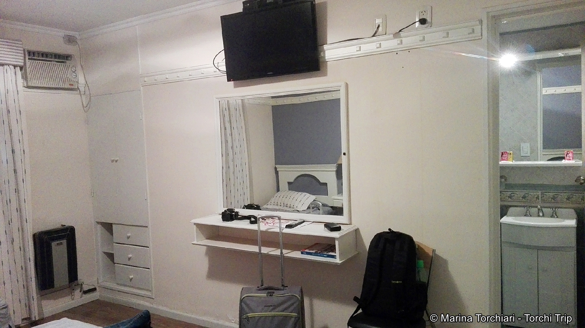 Reservé una habitación doble, que en realidad es triple 😀 La configuración puede ser de una cama matrimonial y una simple o 3 simples. El baño es completo, tiene calefacción, aire acondicionado y LCD de 32 con canales de cable. El wi-fi es libre en todos lados, hay muchos routers y la velocidad es decente, pude trabajar todos los días.