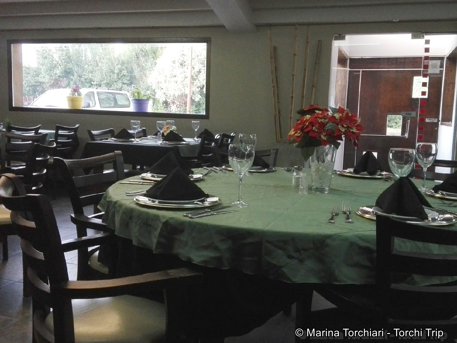 El desayuno es normalito, sin mucho esmero y se sirve en el restaurante que está al lado y pertenece al mismo complejo. El restaurant es el elegante de la ciudad y es muy lindo. Unos pasos más allá también hay una parrilla que ofrece chivo y carnes varias. Tanto el restaurante como la parrilla forman parte de La Ruta de la Trucha y La Ruta del Chivo de Malargüe así que tienen los dos atractivos gastronómicos del lugar al que pueden ir sin sacarse las chancletas 😀