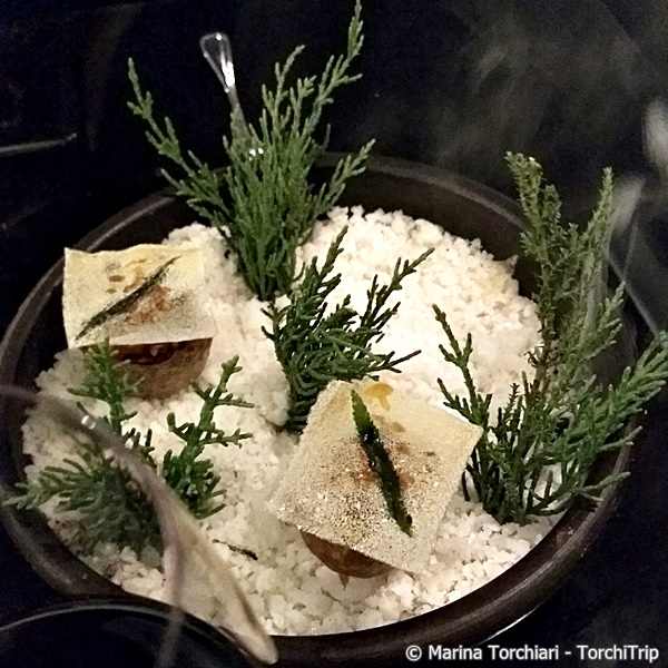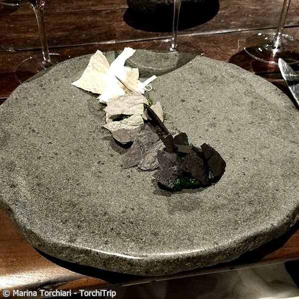 No quiero detenerme en la carta porque todos los ingredientes son estacionales y la mayoría salvajes, por lo que la “carta” se va modificando en función de la disponibilidad de estas exóticas materias primas. Cuando uno se sienta, no sabe exactamente qué es lo que va a comer y recién al final entregan un flyer con el detalle de lo que sucedió en las dos o tres horas anteriores (si, son por lo menos 16 pasos, demora una eternidad).