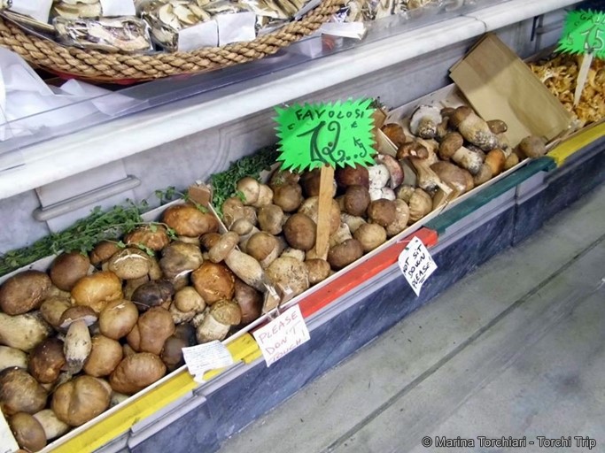 En los otros puestos hablamos con los vendedores de hongos y las calidades y calibres de los famosísimos porcini del risotto; los puestos de menudencias que están separados de los de carne -ahí los norteamericanos casi se caen muertos porque ni imaginaban que la parte de adentro de la vaca se come-; los puestos de aves con sus pollos enteros con patas y cabezas, perdices y no patos u ocas como en Francia; y el final a toda orquesta con el carnicero que nos mostró la famosa pieza de dónde sacan el bife florentino que no es otro que el bife angosto con lomo y nos explicó como se corta… bah, le explicó a los demás mientras yo, la argentinita, se quedaba en el fondo haciendo chistes con los cocineros que me gastaban diciendo “seguro que en Argentina no ven estas cosas” 😀